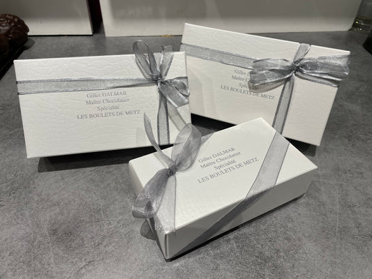 Chocolatier pâtissier depuis 40 ans, nous avons toujours poursuivi l'excellence. Depuis 29 ans, nous nous consacrons à créer des délices chocolatés uniques. Notre spécialité, les boulets de Metz, s'est enrichie il y a dix ans des pavés de Bon-Secours, puis en 2019, du petit boulet et du petit lorrain à la mirabelle.